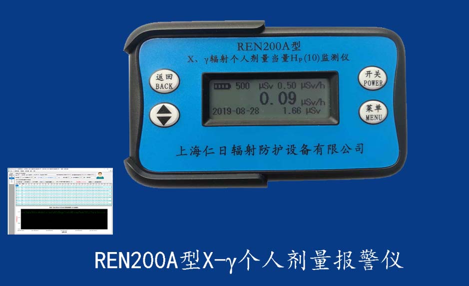 REN200型X、γ個人劑量報(bào)警儀(又叫X、γ輻射個人劑量當(dāng)量HP(10)監(jiān)測儀)內(nèi)置高靈敏度蓋格計(jì)數(shù)管為探測器,主要用來監(jiān)測各種放射性工作場所的X、γ以及硬β射線的輻射,具有響應(yīng)快,測量范圍寬的特點(diǎn)。能顯示工作場所的劑量當(dāng)量率和累積劑量,更換電池時,日期及累積數(shù)據(jù)能永久保存。可選配RenRiPersonal個人劑量管理軟件,該軟件可存儲多個人的歷史數(shù)據(jù),能記錄日累積、月累積、年累積、輻照時長、計(jì)算平均劑量率、扣除或不扣除本底輻射,且以文字和圖譜的方式展現(xiàn)數(shù)據(jù)。廣泛應(yīng)用于核電站、加速器、鋼鐵、化工、同位素應(yīng)用、醫(yī)院、工業(yè)X、γ無損探傷、放射醫(yī)療、鈷源治療、γ輻照、放射性實(shí)驗(yàn)室、核設(shè)施周圍環(huán)境監(jiān)測